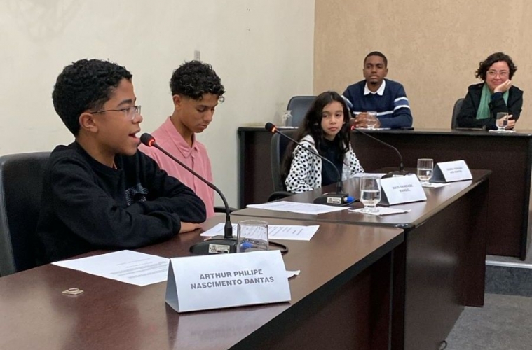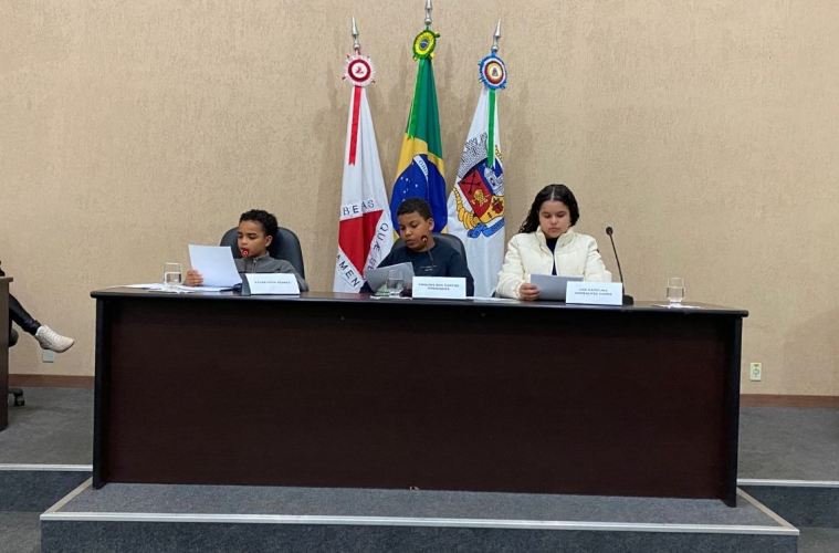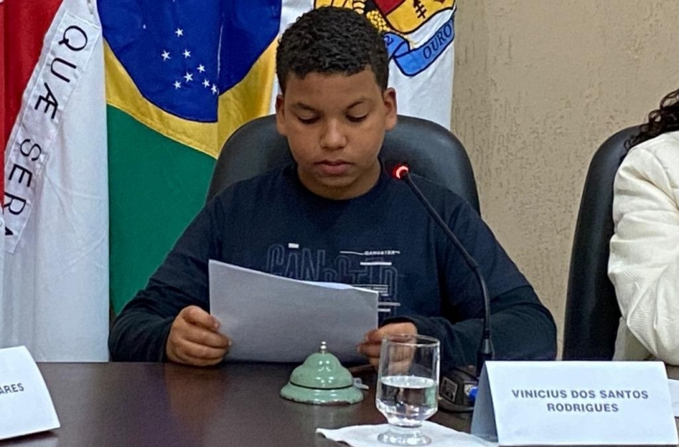 Na quarta-feira (03), os vereadores mirins de Ouro Branco se reuniram para a 2ª Sessão Ordinária do programa em 2025. Os jovens Vinícius dos Santos Rodrigues (presidente), Ana Carolina Gonçalves Vieira (vice-presidente), Kaleb Rosa Soares (secretário), Arthur Philipe Nascimento Dantas, Davi Trindade Rangel, Isabel Tiemann dos Santos, Kaio Alexandre Silva, Miguel Henrique da Silva e Sofia Batista Azevedo votaram e aprovaram os primeiros projetos de lei e requerimentos desta legislatura: