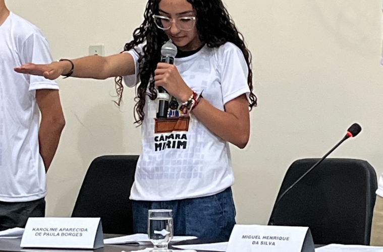 Karoline Aparecida de Paula Borges, da Escola Municipal Nossa Senhora do Carmo, tomou posse como vereadora mirim suplente e se uniu aos jovens Vinícius dos Santos Rodrigues (presidente), Ana Carolina Gonçalves Vieira (vice-presidente), Kaleb Rosa Soares (secretário), Arthur Philipe Nascimento Dantas, Davi Trindade Rangel, Isabel Tiemann dos Santos, Kaio Alexandre Silva, Miguel Henrique da Silva e Sofia Batista Azevedo.