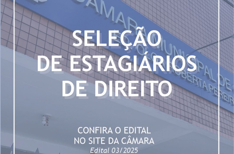 Estão abertas as inscrições para seleção pública de estagiários, acadêmicos em Direito de instituições de ensino devidamente conveniadas com a Câmara Ouro Branco. Os estagiários recebem bolsa-auxílio mensal no valor de um salário mínimo, além de outros benefícios.