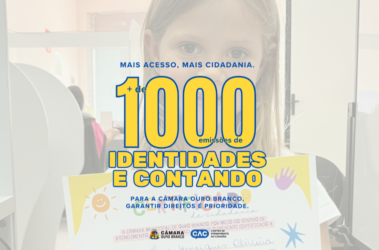 Mais de 1.000 emissões da Carteira de Identidade Nacional realizadas pelo Centro de Atendimento ao Cidadão - CAC da Câmara Ouro Branco!